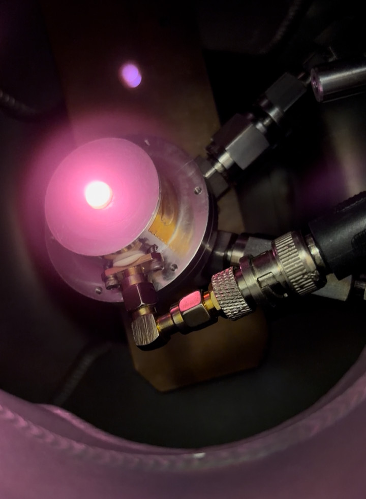 I also started working with Cal Poly students on plasma propulsion topics. A new “independent research activity” (IRA, a research-focused student club), called Poly Electric Propulsion and Plasma Research (PEPPR) was formed. Cal Poly used to have an active EP program under former Profs. Amelia Greig and Kristina Jameson (Silva). PEPPR students were successful in operating Dr. Greig’s RF “pocket rocket” thruster on Argon, see Figure 6. More details about this device is available in Croteau, T., “Micro-nozzle simulation and test for an electrothermal plasma thuster” 2018 master’s thesis (pdf).