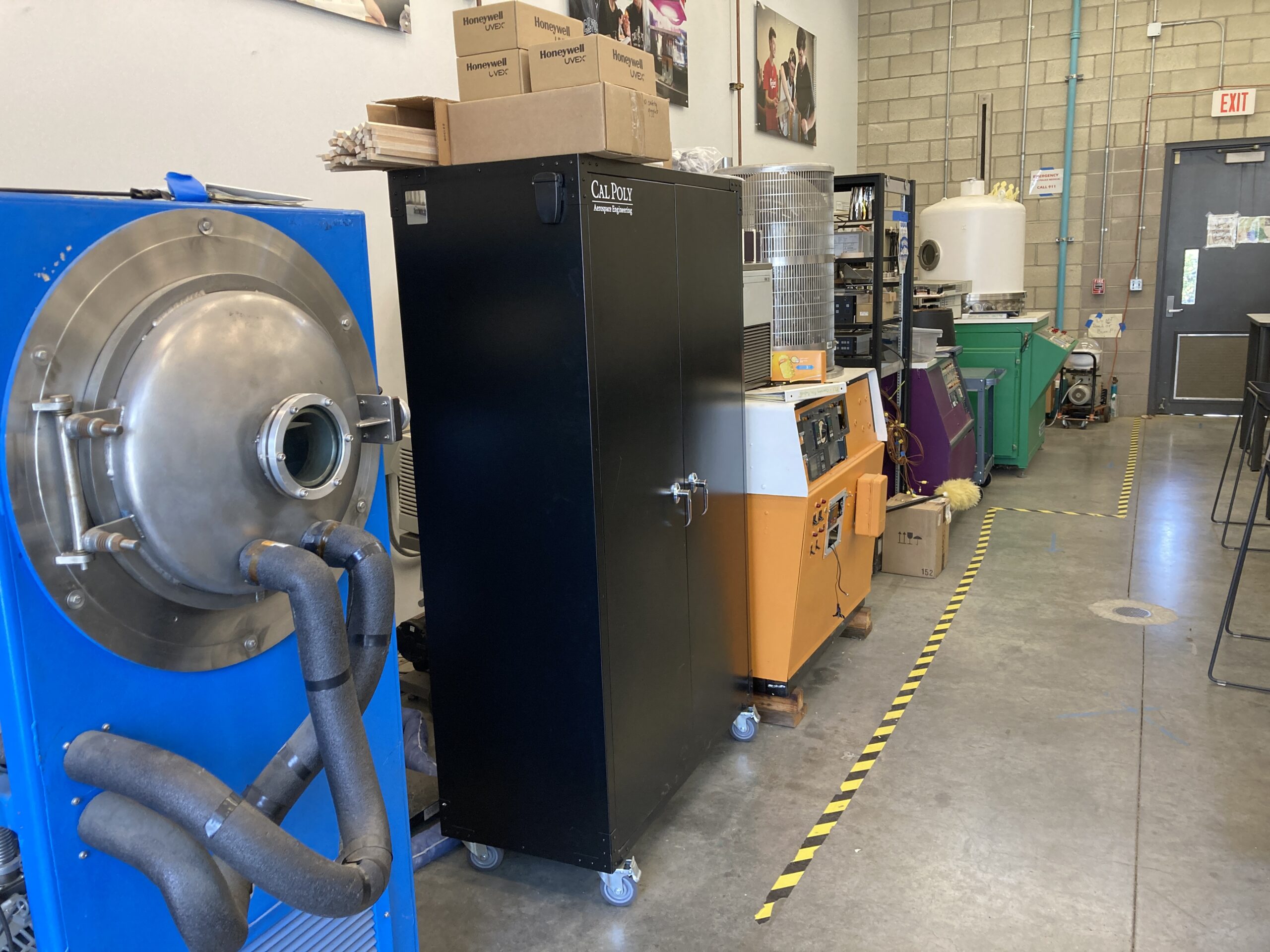 The Aero department also owns a multitude of smaller vacuum chambers that are primarily utilized by a space environments undergraduate laboratory and graduate students working on their masters theses. These chambers can be seen in Figure 4, and include a smaller TVAC chamber, as well as an RF-driven atomic oxygen chamber, and various general purpose vessels.